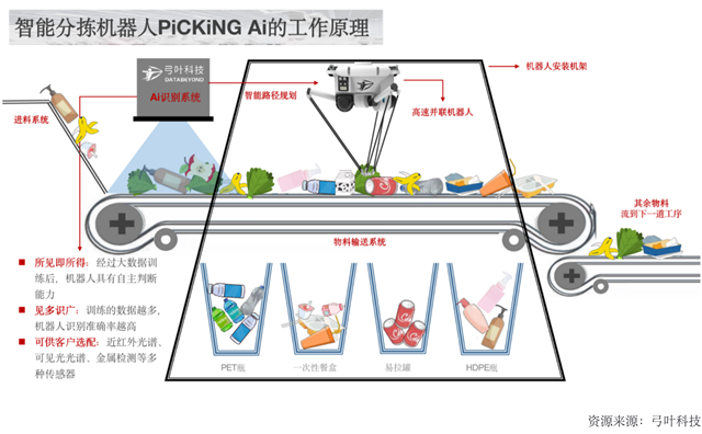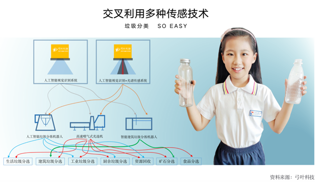 除了將固廢大數(shù)據(jù)庫、云端、多傳感器融合技術(shù)、驅(qū)控一體技術(shù)、AI識(shí)別技術(shù)集合于一體的人工智能垃圾分揀機(jī)器人,弓葉科技也將服務(wù)綜合運(yùn)用于循環(huán)經(jīng)濟(jì)產(chǎn)業(yè)的其他環(huán)節(jié),構(gòu)建以AI和大數(shù)據(jù)驅(qū)動(dòng)的全產(chǎn)業(yè)鏈落地,在固廢回收領(lǐng)域,實(shí)踐高效減碳,助力固廢處理智能化、數(shù)字化和自動(dòng)化轉(zhuǎn)型升級(jí)。