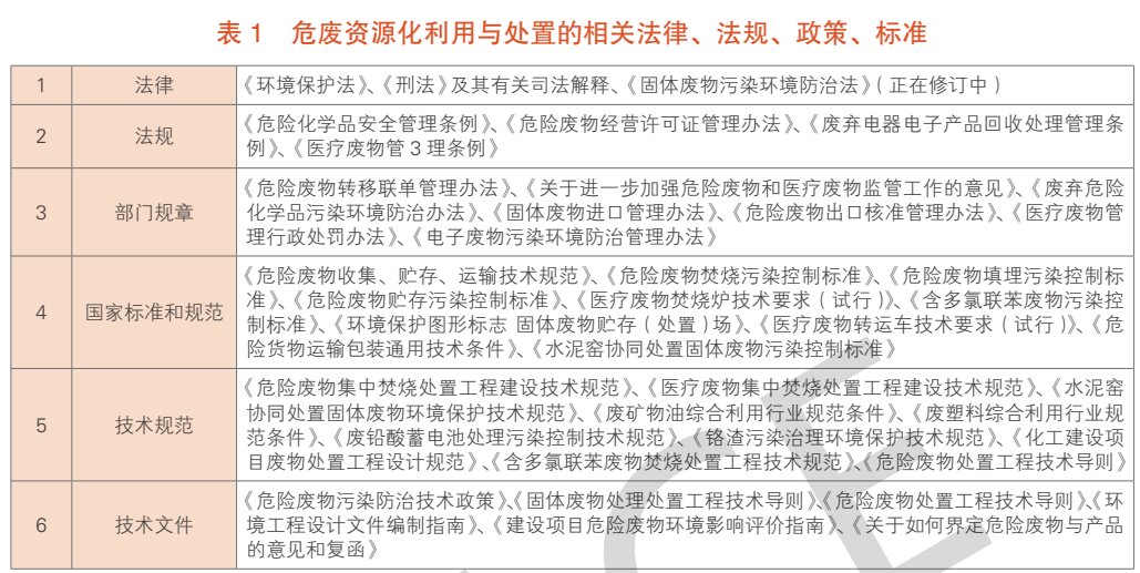危廢資源化利用與處置相關(guān)的法律、法規(guī)、政策、標準