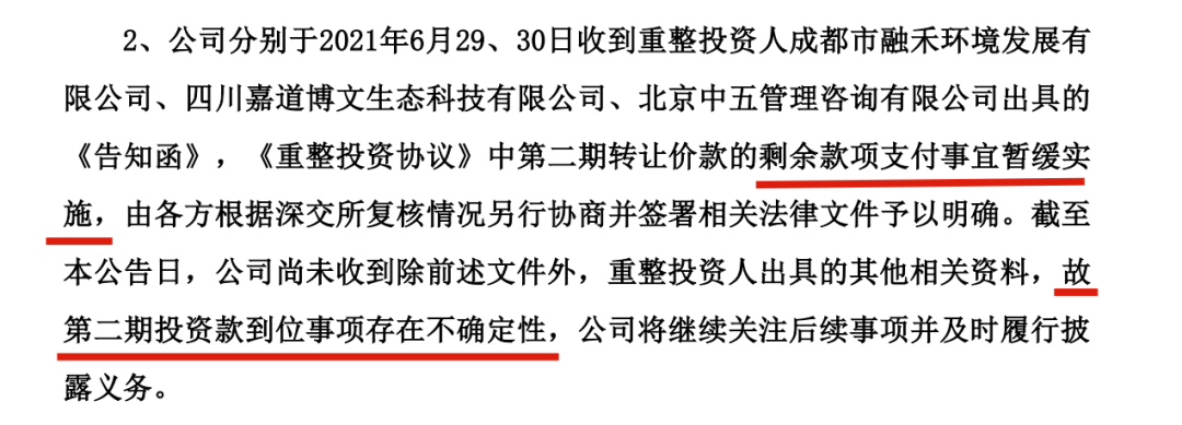 但如天翔環(huán)境近日披露,現(xiàn)在小國資們也出現(xiàn)了猶豫,目前已暫停打款。盡管已經(jīng)是白菜價(jià)接盤,但這個(gè)雷實(shí)在是太大,坑實(shí)在是太多,接完盤能不能玩轉(zhuǎn)?大家現(xiàn)在心理都沒底。