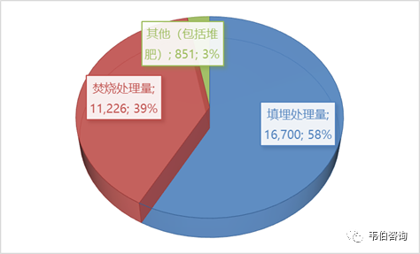 2018年,我國城市生活垃圾無害化處理量達(dá)到28,778萬噸,其中填埋處理量16,700萬噸,焚燒處理量11,226萬噸,其他(包括堆肥)處理量851萬噸。