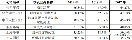注:綠色動力從2018年年報開始將項(xiàng)目運(yùn)營業(yè)務(wù)毛利率調(diào)整為披露固廢處理業(yè)務(wù)毛利率,相關(guān)披露口徑存在一定變化;中國天楹2019年垃圾處理業(yè)務(wù)毛利率變化主要系2019年1月完成固廢管理業(yè)務(wù)收購所致。