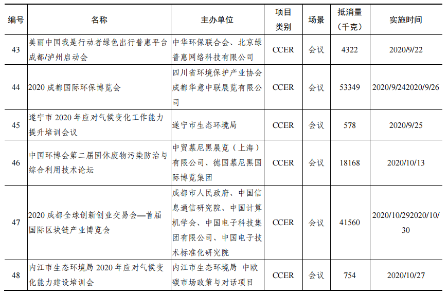 目前,四川已擁有碳中和會議、展覽、大數(shù)據(jù)中心、園區(qū)、景區(qū)、音樂會、婚禮等場景,雅安大數(shù)據(jù)產(chǎn)業(yè)園建成全國首個(gè)碳中和國家綠色數(shù)據(jù)中心,青城山—都江堰風(fēng)景名勝區(qū)成為國內(nèi)首個(gè)碳中和景區(qū)。從集中度看,溫室氣體排放抵消量最大的10個(gè)活動(都江堰風(fēng)景名勝區(qū)、第二屆國際城市可持續(xù)發(fā)展高層論壇、青城山風(fēng)景名勝區(qū)、全國機(jī)關(guān)事務(wù)文化建設(shè)工作研討會、2020成都國際環(huán)保博覽會、四川省林業(yè)碳匯國際研討會、2019天府金融論壇主論壇及發(fā)布會、2020成都全球創(chuàng)新創(chuàng)業(yè)交易會—首屆國際區(qū)塊鏈產(chǎn)業(yè)博覽會、四川省鐵路產(chǎn)業(yè)投資集團(tuán)公司資產(chǎn)經(jīng)營管理人員專題培訓(xùn)班、四川省用能權(quán)交易開市活動及業(yè)務(wù)培訓(xùn)會),共抵消溫室氣體2761.3噸,約占全部抵消量的57.2%;成都市碳中和活動超過60場次,最為集中,其次是遂寧市。從活動層次看,多以企事業(yè)單位活動為主;地方政府組織或參與的活動超過34場次;國際會議共有4場次,包括第二屆國際城市可持續(xù)發(fā)展高層論壇、2020成都國際環(huán)保博覽會、四川省林業(yè)碳匯國際研討會、2020成都全球創(chuàng)新創(chuàng)業(yè)交易會—首屆國際區(qū)塊鏈產(chǎn)業(yè)博覽會、第三屆國際城市可持續(xù)發(fā)展高層論壇。環(huán)境類活動碳中和超過40場次,金融機(jī)構(gòu)參與活動也相對較多,凸顯了金融領(lǐng)域和環(huán)境領(lǐng)域的理念引領(lǐng)作用。