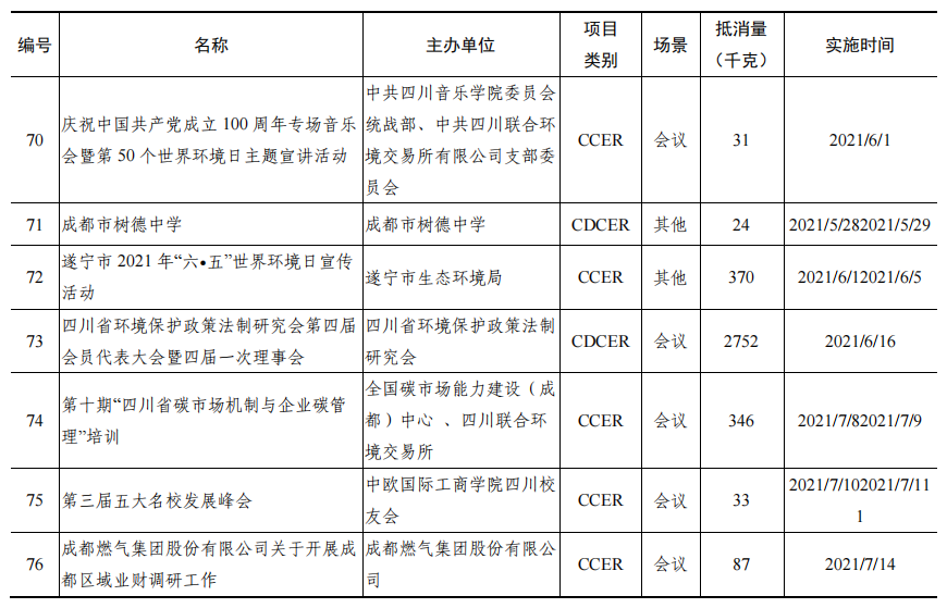 《研究報(bào)告》顯示,截至2021年7月底,全省累計(jì)實(shí)施社會活動碳中和98場(次),參與人數(shù)超過8621人次,抵消溫室氣體排放4828.9噸二氧化碳當(dāng)量,相當(dāng)于100萬人停駛一天小汽車產(chǎn)生的二氧化碳排放。其中,依托四川聯(lián)合環(huán)境交易所“點(diǎn)點(diǎn)”碳中和公益服務(wù)平臺線上實(shí)施96場次,成為碳中和的主流方式。碳中和場景也十分多樣,不斷涌現(xiàn)會議、展覽、大數(shù)據(jù)中心、園區(qū)、景區(qū)、音樂會、婚禮等碳中和場景,雅安大數(shù)據(jù)產(chǎn)業(yè)園建成全國首個(gè)碳中和國家綠色數(shù)據(jù)中心,青城山—都江堰風(fēng)景名勝區(qū)成為國內(nèi)首個(gè)碳中和景區(qū)。抵消的產(chǎn)品除了國家核證自愿減排量,還有“碳惠天府”核證減排量和林業(yè)碳匯等本地化產(chǎn)品。