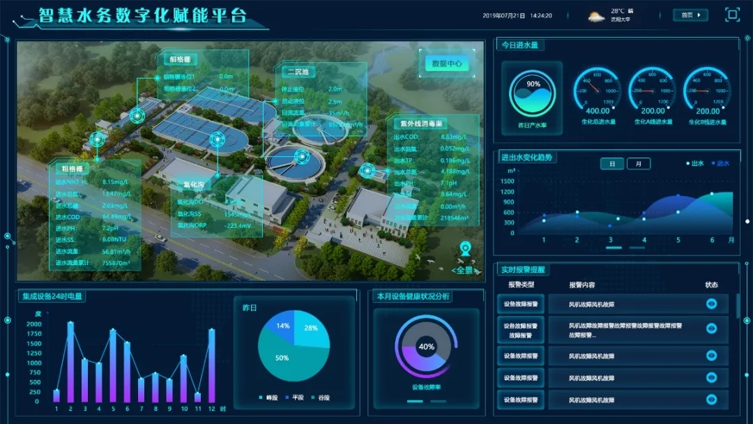 一張圖在線監(jiān)管所有水廠、泵站,實(shí)現(xiàn)自動預(yù)警控制、遠(yuǎn)程設(shè)備控制、設(shè)備噪聲監(jiān)測、一鍵換班確認(rèn)、智能專家輔助、遠(yuǎn)程視頻聯(lián)動監(jiān)控、集約數(shù)據(jù)統(tǒng)計等功能,幫助運(yùn)維人員實(shí)時掌握所有水廠、泵站情況,實(shí)現(xiàn)智能化的處置、生產(chǎn)與運(yùn)營管理。
