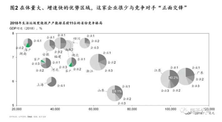 這是我們服務(wù)過(guò)的一家全國(guó)性生態(tài)環(huán)保企業(yè)的區(qū)域布局(見(jiàn)圖2,為保護(hù)隱私,數(shù)據(jù)已做處理),可以看到,在那些規(guī)模大、增速快的地區(qū),這家企業(yè)的市場(chǎng)占有率很低,盡管它的規(guī)模已位居全國(guó)前20強(qiáng)。這種“劍走偏鋒”其實(shí)反映出生態(tài)環(huán)保市場(chǎng)競(jìng)爭(zhēng)的無(wú)奈:時(shí)至今日,“關(guān)系”似乎仍然是決定項(xiàng)目能否拿到手的最重要因素,技術(shù)、產(chǎn)品、運(yùn)營(yíng)、品牌都不重要,但唯獨(dú)不能沒(méi)有關(guān)系。上述的這些區(qū)域正是這家企業(yè)的“關(guān)系”所在。