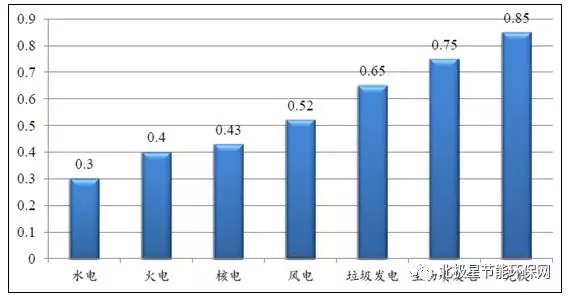 各種發(fā)電方式上網(wǎng)電價(jià)(元/kwh)