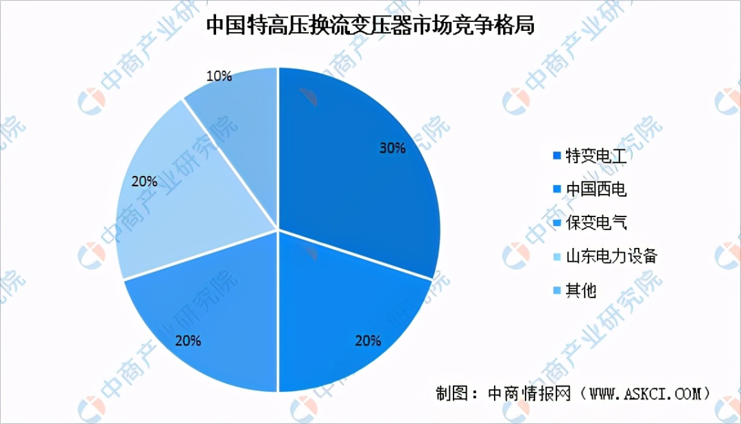 根據(jù)中商產(chǎn)業(yè)研究院的數(shù)據(jù),特變電工是換流變壓器龍頭,市占率為30%,中國西電、保變電氣、山東電力設備則各占了20%。