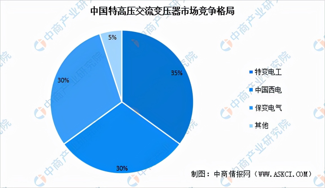 特變電工在交流變壓器市場中占35%左右,中國西電和保變電氣市場各占30%。