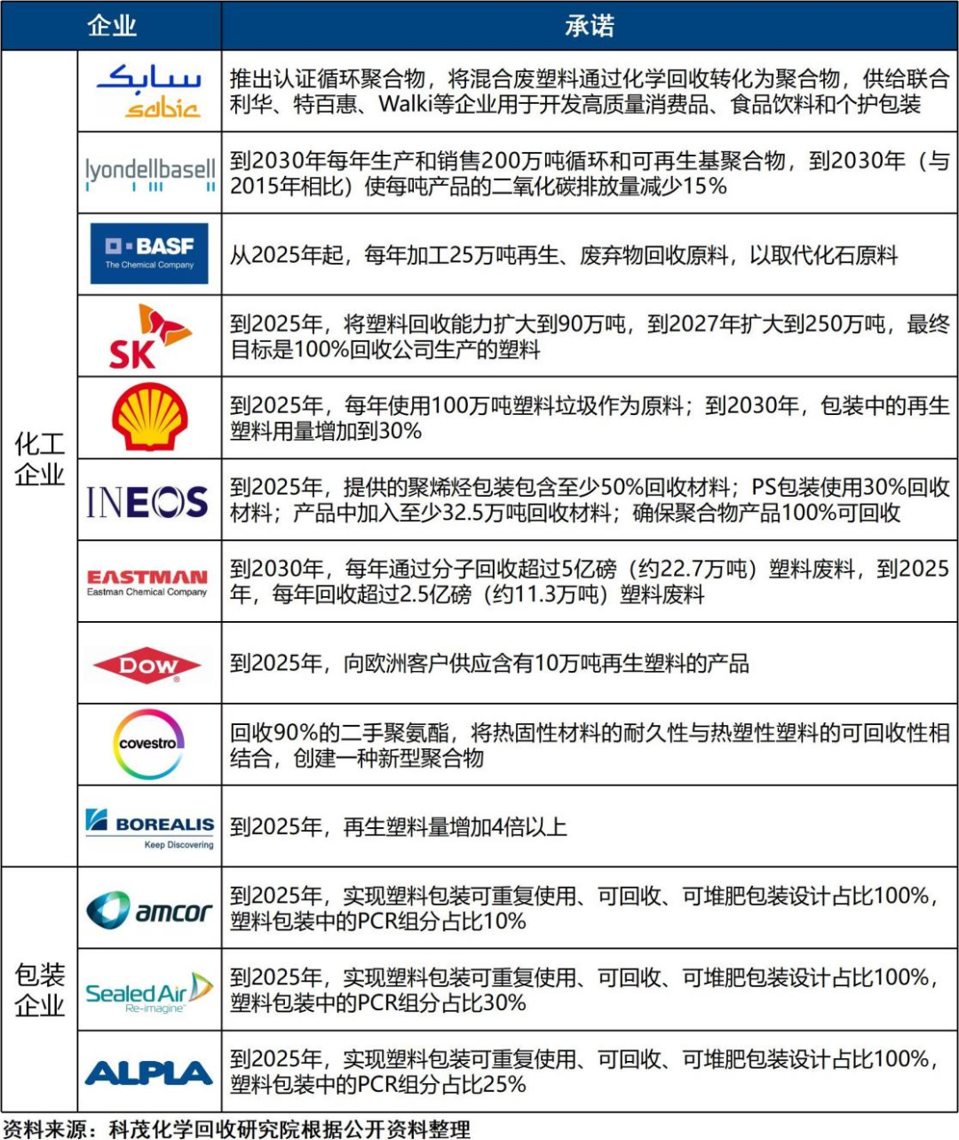 2.以BASF、SABIC、陶氏等化工巨頭為主要成員的40多家國(guó)際企業(yè)建立“終結(jié)塑料廢棄物聯(lián)盟(AEPW)”,承諾投入15億美元,幫助終結(jié)環(huán)境中的塑料垃圾,同時(shí)承諾為客戶提供PCR塑料。建立和擴(kuò)充PCR塑料產(chǎn)能和產(chǎn)業(yè)鏈,成為近幾年化工巨頭的重要戰(zhàn)略。
