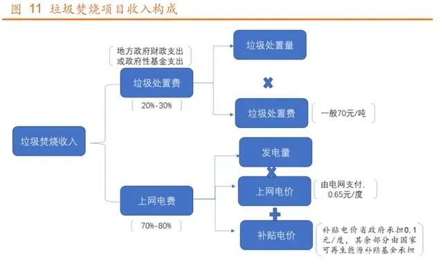 垃圾焚燒運營收入主要來自于上網電費(向電網收?。┖屠幚碣M(向政府收取),上網電費一般占比 70%~80%,垃圾處理費一般占比 20%~30%。