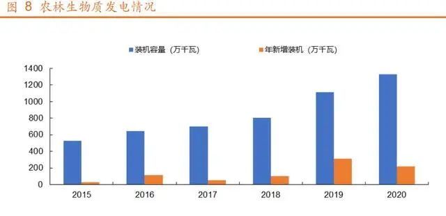 生物質發(fā)電裝機容量連續(xù)3年世界第一。截止到 2020 年年底,全國已投產生物質發(fā)電項目 1353 個;并網裝機容量 2952 千瓦,年發(fā)電量 1326 萬千瓦,年上網電量 1122 萬千瓦。我國生物質發(fā)電裝機容量已經是連續(xù)三年位列 世界第一。近年來,我國生物質能發(fā)電量保持穩(wěn)步增長態(tài)勢。2020 年,中國生物質年發(fā)電量達到 1326 億千瓦時,同比增長 19.35%。