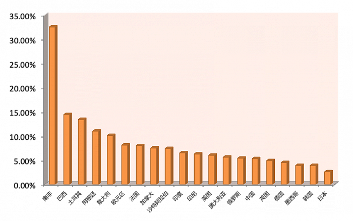 圖2:G20國家/地區(qū)失業(yè)率排名。數(shù)據(jù)來源:Trading Economics