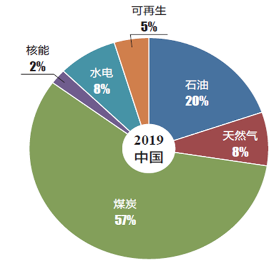 圖4:2019年中國一次能源結(jié)構(gòu)。數(shù)據(jù)來源:《BP世界能源統(tǒng)計(jì)年鑒》