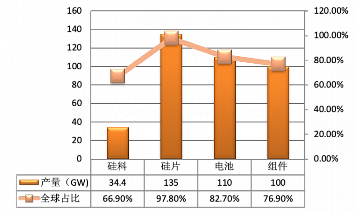 圖3:2019年中國光伏產(chǎn)品產(chǎn)量及全球占比。數(shù)據(jù)來源:CPIA三、中國尚存哪些劣勢?