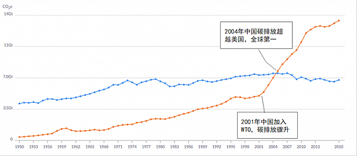 圖5:中美年碳排放對(duì)比。數(shù)據(jù)來源:PIK