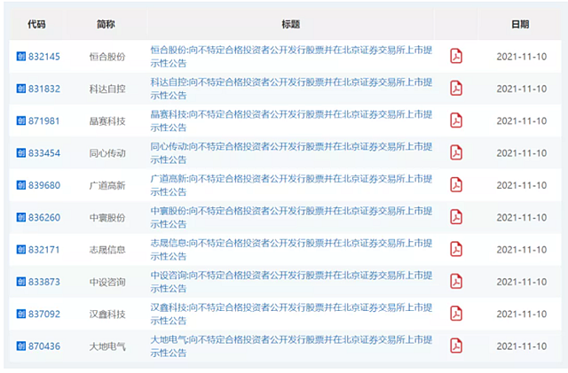 10家新三板精選層企業(yè)披露北交所北京證券交易所上市提示性公告
