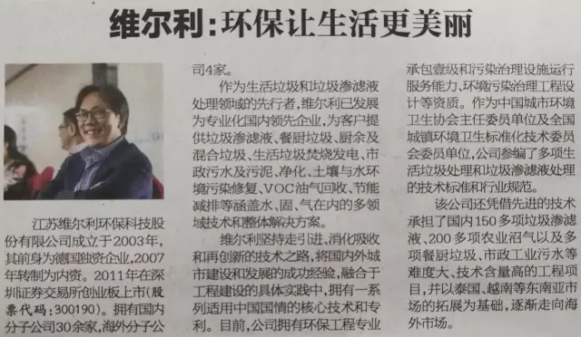 常州日?qǐng)?bào)刊登維爾利報(bào)道