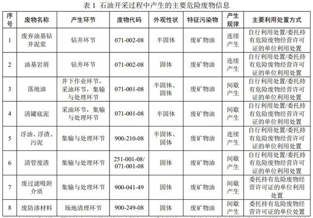 3.1 石油開采主要危險廢物產(chǎn)生環(huán)節(jié)