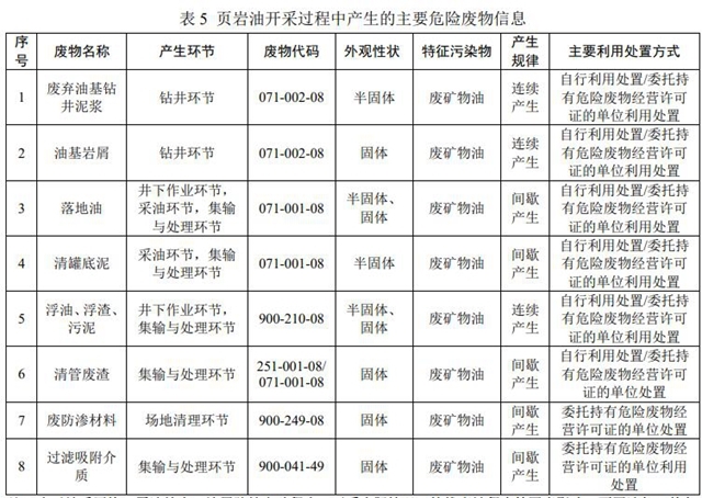 注:由于地質(zhì)區(qū)塊、原油粘度、地層膠結(jié)出砂程度、開采實(shí)際情況、管線腐蝕程度等因素影響,不同油氣田的危險廢物產(chǎn)生規(guī)律和產(chǎn)生量差異較大,因此未列出危險廢物產(chǎn)廢系數(shù)。