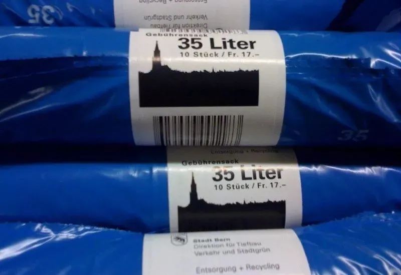 在瑞士,必須使用在超市購買的專門垃圾袋裝垃圾,如果不用則垃圾不被收運。瑞士維持環(huán)境清潔的花費并不低,特別是路邊垃圾回收更是耗資巨大。在瑞士的26個州大部分都征集垃圾袋稅,一個容量約17升的垃圾袋大致需要支付1.6瑞士法郎(約合人民幣10.3元)。而事實上,人們買的不是垃圾袋,而是合法丟棄垃圾的權(quán)利——也就是說,如果不用這類垃圾袋包裝,扔垃圾是違法的。每到垃圾回收日,家家戶戶門口就會有一排藍色垃圾袋,對於初見者,可謂蔚為奇觀。
