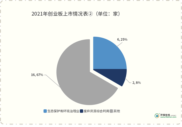 上述數(shù)據(jù)顯示,2021年,登陸創(chuàng)業(yè)板的環(huán)保企業(yè)以江蘇最多,廣東次之,浙江和上海均有三家,整體覆蓋11個省市。除了江浙、北上廣以及福建這些市場“寵兒”,“兩湖”加皖魯川也各有斬獲,總體來看南方市場比較受歡迎。