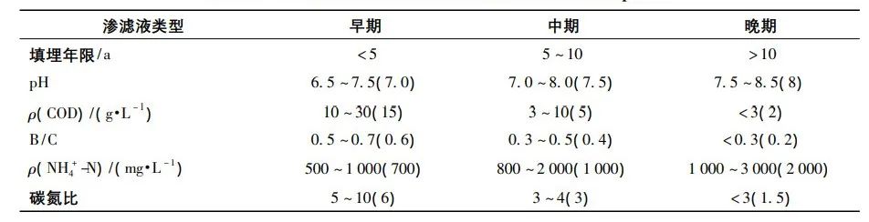 不同填埋時間的滲濾液的特征