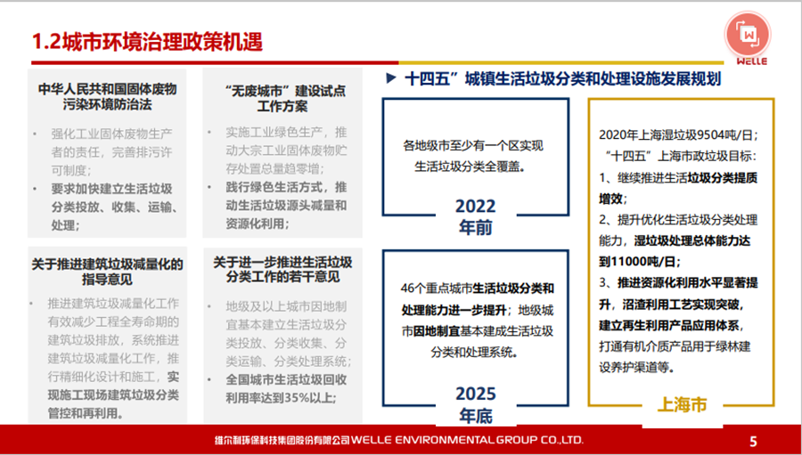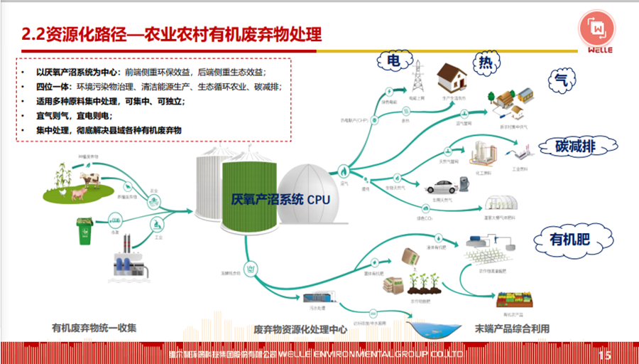本文圍繞碳中和背景下的政策機(jī)遇、城鄉(xiāng)有機(jī)廢棄物資源化的的主要處理方法和路徑等內(nèi)容展開,同時(shí)對(duì)維爾利集團(tuán)概況和發(fā)展歷程做了簡(jiǎn)要回顧。 2021年10月20-21日,2021年中國(guó)沼氣學(xué)會(huì)學(xué)術(shù)年會(huì)暨中德沼氣合作論壇在南京舉行。作為2021年中國(guó)沼氣學(xué)會(huì)學(xué)術(shù)年會(huì)的承辦單位,維爾利環(huán)??萍技瘓F(tuán)股份有限公司董事長(zhǎng)李月中博士以《城鄉(xiāng)有機(jī)廢棄物資源化路徑探討》為主題,與大家一起探討了碳中和背景下城鄉(xiāng)有機(jī)廢棄物資源化的發(fā)展與未來(lái)。報(bào)告圍繞碳中和背景下的政策機(jī)遇、城鄉(xiāng)有機(jī)廢棄物資源化的的主要處理方法和路徑等內(nèi)容展開,同時(shí)對(duì)維爾利集團(tuán)概況和發(fā)展歷程做了簡(jiǎn)要回顧。本文根據(jù)其發(fā)言整理。▼維爾利環(huán)??萍技瘓F(tuán)股份有限公司董事長(zhǎng) 李月中各位領(lǐng)導(dǎo)、各位專家、各位同仁,大家上午好!今天有幸代表維爾利集團(tuán)和大家做交流,作為會(huì)議的承辦方,也感謝中國(guó)沼氣學(xué)會(huì)、南京大學(xué)、德國(guó)沼氣協(xié)會(huì)給維爾利這個(gè)機(jī)會(huì)。維爾利作為專業(yè)的企業(yè),實(shí)際上歷史并不是很長(zhǎng),但是我們對(duì)沼氣和厭氧技術(shù)這塊有自己的獨(dú)到見解。作為一個(gè)商業(yè)機(jī)構(gòu),企業(yè)怎么能夠在競(jìng)爭(zhēng)行業(yè)里生存和發(fā)展?在這里和大家做一些交流,和大家一起思考,同時(shí)希望在座的同仁能夠在這個(gè)行業(yè)相對(duì)比較困難的情況下抱團(tuán)取暖。2020年9月,國(guó)家主席習(xí)近平在聯(lián)合國(guó)大會(huì)上提出“二氧化碳排放力爭(zhēng)于2030年前達(dá)到峰值,努力爭(zhēng)取2060年前實(shí)現(xiàn)碳中和”。2021年3月15日,習(xí)近平總書記主持召開中央財(cái)經(jīng)委員會(huì)第九次會(huì)議并發(fā)表重要講話強(qiáng)調(diào),要把碳達(dá)峰、碳中和納入生態(tài)文明建設(shè)整體布局,拿出抓鐵有痕的勁頭,如期實(shí)現(xiàn)2030年前碳達(dá)峰、2060年前碳中和的目標(biāo)。從能源結(jié)構(gòu)上來(lái)說(shuō),有機(jī)垃圾資源化產(chǎn)生的生物質(zhì)能源在實(shí)現(xiàn)雙碳目標(biāo)上具有獨(dú)特意義。這實(shí)際上也是倒推企業(yè)行業(yè)轉(zhuǎn)型。對(duì)大家來(lái)說(shuō),“碳達(dá)峰碳中和”既是一個(gè)挑戰(zhàn)也是一個(gè)機(jī)會(huì)。這里面包括了現(xiàn)在我們推出的對(duì)城市環(huán)境,對(duì)農(nóng)村農(nóng)業(yè)環(huán)境可能存在的機(jī)會(huì),這些機(jī)會(huì)對(duì)環(huán)保產(chǎn)業(yè)來(lái)說(shuō),個(gè)人認(rèn)為受到政策影響比較大。為什么德國(guó)2016年在農(nóng)業(yè)生物天然氣領(lǐng)域有下滑?是因?yàn)槟承┱叱霈F(xiàn)了不到位的情況,一些企業(yè)就不愿意去做。在碳達(dá)峰、碳減排的前提下,我們有很多的機(jī)會(huì),但這個(gè)機(jī)會(huì)要真正落實(shí),還是要國(guó)家從頂層設(shè)計(jì)到具體的政策到位,才能夠使這個(gè)行業(yè)有比較好的發(fā)展。在城市環(huán)境治理領(lǐng)域,城市有機(jī)廢棄物(垃圾量)非常大。上海實(shí)施垃圾分類以后,2020年上海濕垃圾的產(chǎn)生量是每天在9500-10000噸左右,也就是說(shuō)1/3為濕垃圾。這對(duì)焚燒廠來(lái)說(shuō),是一個(gè)巨大的減負(fù),但同時(shí)對(duì)處理能力也有了條件限制。我們深度參與了這方面工作,現(xiàn)在上海的處理能力大概為4000噸左右,意味著上海的濕垃圾處理能力還有60%在建,徹底實(shí)現(xiàn)垃圾分類的路還很遠(yuǎn)。北京情況更為嚴(yán)重。原來(lái)北京只有幾個(gè)堆肥廠,原來(lái)只是三相做一點(diǎn)小的堆肥,如果真的要實(shí)現(xiàn)垃圾源頭分類,大概4、5千噸的垃圾處理設(shè)施要重新建設(shè)。在農(nóng)業(yè)農(nóng)村環(huán)境治理領(lǐng)域,包括農(nóng)產(chǎn)品加工這方面,整個(gè)市場(chǎng)規(guī)??赡芨?。各位前輩都已經(jīng)做了一些介紹,我們是不是能夠全部實(shí)現(xiàn)資源化處理,是值得商榷的。對(duì)于不同的原料,我們應(yīng)該怎么處理?作為企業(yè),我們推行起來(lái)還是有一定的難度。我們現(xiàn)在的這些大型的沼氣項(xiàng)目,它的源頭、原料、收益、收益成本,包括最終的產(chǎn)品出路,收集半徑到底多少是最合理的?實(shí)際上是需要根據(jù)不同有機(jī)廢棄物的種類以及最終產(chǎn)品的出路來(lái)規(guī)劃項(xiàng)目規(guī)模,而不是按照政策要求。比如一萬(wàn)方的沼氣工程才稱得上大型沼氣項(xiàng)目,才有補(bǔ)貼,這樣的項(xiàng)目就不一定能夠真正地實(shí)現(xiàn)盈利。 下面大概講一講我們最近對(duì)城鄉(xiāng)有機(jī)廢棄物資源化的主要處理方法和路徑。