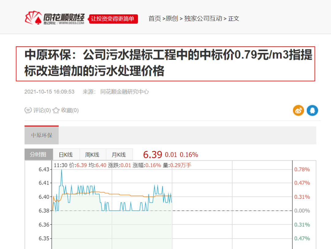 3、中原環(huán)保:公司污水提標(biāo)工程中的中標(biāo)價0.79元/m3指提標(biāo)改造增加的污水處理價格,同花順金融研究中心,2021-10-15