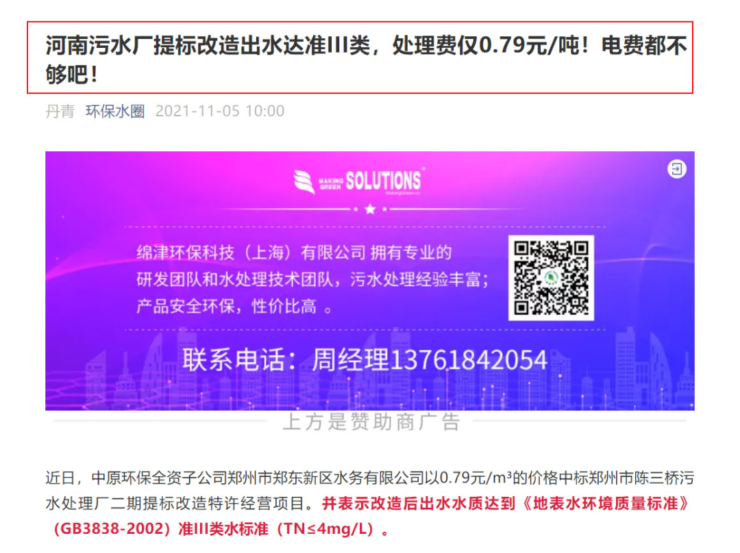 2、處理費0.79元/噸,出水達(dá)準(zhǔn)III類!合理嗎?環(huán)保圈,2021-10-12