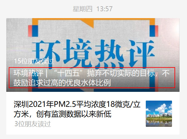2月10日,《中國環(huán)境報》官方公眾號“中國環(huán)境”又發(fā)表文章《環(huán)境熱評|“十四五”拋棄不切實際的目標(biāo),不鼓勵追求過高的優(yōu)良水體比例》,對張波司長的講話做了進(jìn)一步解讀。