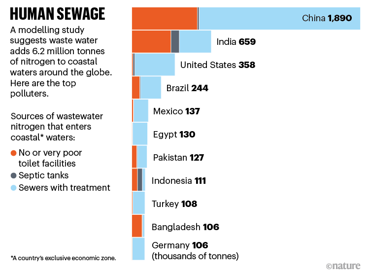 根據(jù)當(dāng)?shù)胤ㄒ?guī)和處理廠條件,從這個工藝中排出的出水仍可能含有大量氮和其他營養(yǎng)物質(zhì),以及一些其他污染物。而世界上57%的人口根本沒有連接到集中式污水處理廠(見“人類污水”)。