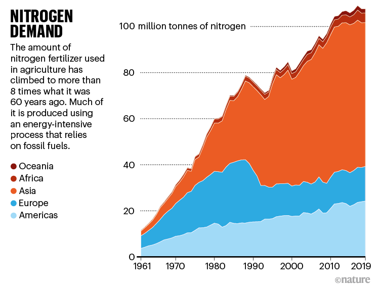 這并不容易,Larsen說。從工程角度來看,“處理尿液是一種糟糕的解決方案”,她說。除了水之外,最大部分是尿素,這是一種富含氮的化合物,是人體在代謝蛋白質(zhì)時產(chǎn)生的副產(chǎn)品。尿素本身是有用的:合成尿素是一種常見的氮肥(見“氮需求”)。但它也很棘手:當(dāng)與水結(jié)合時,尿素會轉(zhuǎn)化為氨氣,這將使尿液具有特有的氣味。如果不加以控制,氨氣會發(fā)臭,污染空氣,并將寶貴的氮帶走。在廣泛存在的尿素酶的催化下,這個被稱為尿素水解的反應(yīng)可以在幾微秒內(nèi)完成,使尿素酶成為已知最有效的酶之一[4]。