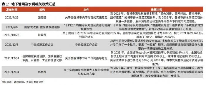 2021年以來(lái),國(guó)家密集出臺(tái)地下管網(wǎng)、水利工程建設(shè)的相關(guān)政策,可謂利好不斷。