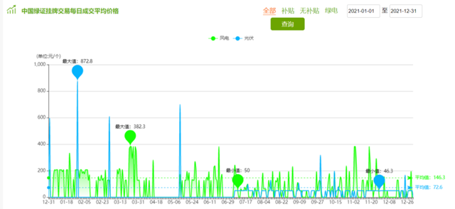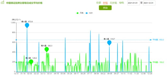 圖1 2021年補(bǔ)貼項(xiàng)目綠證成交價(jià)格情況
