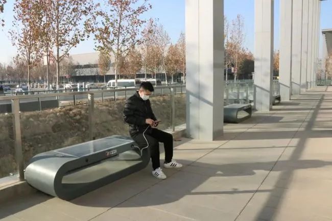 這可不是普通的座椅。椅子坐的那個面就是光伏板,可以實現(xiàn)手機(jī)無線充電或者有線充電。