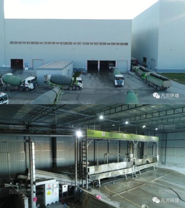廠區(qū)出入口處設(shè)置工程車輛清洗設(shè)備,全自動智能化洗車,高效便捷,有效去除清洗部位的泥土灰塵,解決攪拌車輛外出對道路污染的難題。