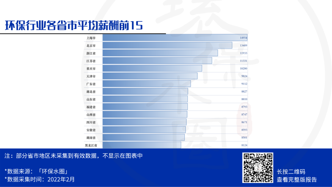 從全國環(huán)保行業(yè)平均薪酬來看,上海、北京、浙江、江蘇、重慶、天津、廣東位居前六。這一方面源于這幾個(gè)省市自身發(fā)展較好,另一方面表示這6大省市虹吸能力強(qiáng),集中了眾多頭部公司和高層次環(huán)保人才。
