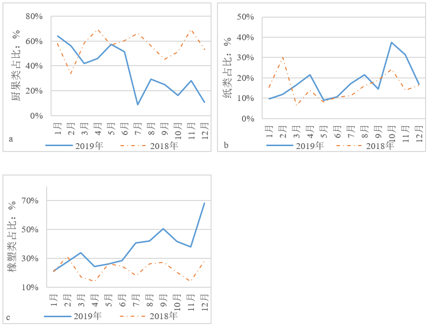 圖7 2018年與2019年生活垃圾分類前后主要成分占比趨勢