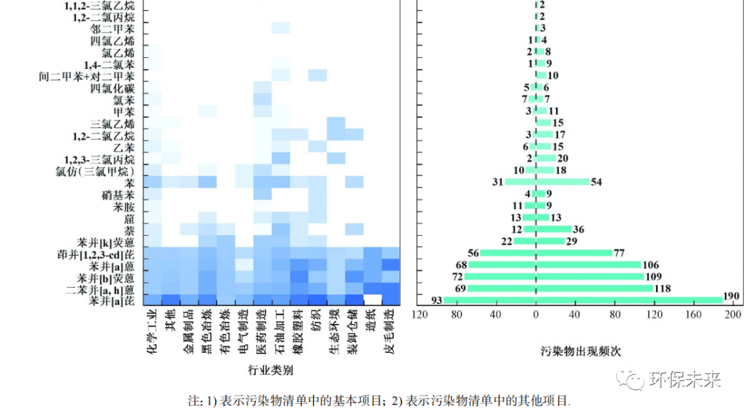 圖 2 不同行業(yè)污染場地特征污染物統(tǒng)計及 GB 36600—2018 實施前后污染場地修復(fù)/管控污染物出現(xiàn)頻次分析Fig.2 Statistics of characteristic pollutants of contaminated sites in different industries and analysis of the frequency ofpollutants in contaminated sites remediation/control before and after the implementation of GB 36600—2018