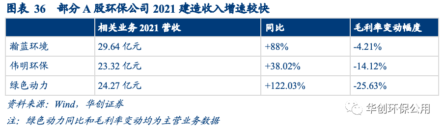 A股主流垃圾焚燒企業(yè)建造收入均出現(xiàn)不同幅度的增長。瀚藍環(huán)境2021年度工程與裝備業(yè)務營收大幅增長88%,由15.73億增至29.64億元(未剔除內(nèi)部交易),但固廢業(yè)務的毛利率整體下降4.21pct;偉明環(huán)保設(shè)備、EPC及服務營收同比增長38.02%至23.32億元,但毛利率卻下降14.12%;綠色動力2021年前不確認建造收入和成本,會計政策變更后確認建造收入24.27億元,總營收大幅增加122.03%至50.57億元,但綜合毛利率卻下降25.63%。垃圾焚燒運營期毛利率遠高于建造毛利率,因此我們認為會計準則的變更在一定程度上可以解釋上述企業(yè)營收增加但毛利率下滑的原因。