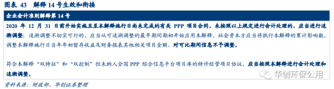 解釋14號要求對部分借款費用予以費用化處理。解釋2號中對價類型(無形資產(chǎn)模式、金融資產(chǎn)模式或混合模式)對借款費用資本化沒有影響而解釋14號明確借款費用的資本化對象是無形資產(chǎn),對價類型是金融資產(chǎn)或者是混合模式下的金融資產(chǎn)部分,相關(guān)的借款費用均應予以費用化。我們認為該會計準則的變更是2021年部分環(huán)保上市公司財務費用上漲的原因之一。