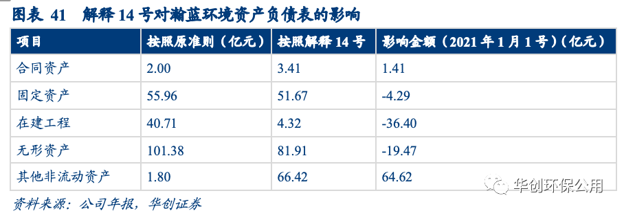 準則變更對A股環(huán)保公司經(jīng)營性現(xiàn)金流影響明顯。以瀚藍環(huán)境為例,執(zhí)行新準則后,公司經(jīng)營性現(xiàn)金流同比減少55.09%,投資活動現(xiàn)金流同比增加45.87%,如剔除解釋第 14 號的影響,經(jīng)營活動產(chǎn)生的現(xiàn)金流量凈額約為 20 億元,同比增長約2.24%。