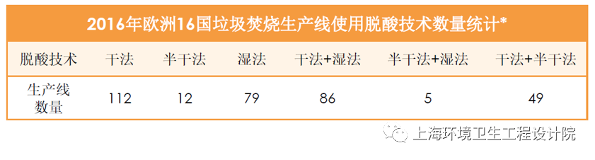 表1 歐洲垃圾焚燒廠脫酸工藝配置統(tǒng)計表(單位:個)