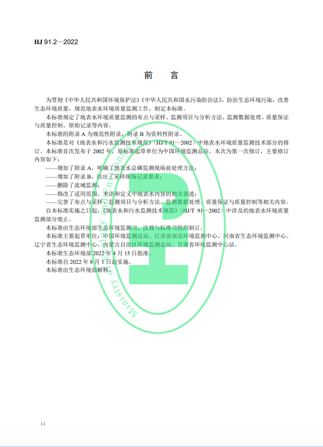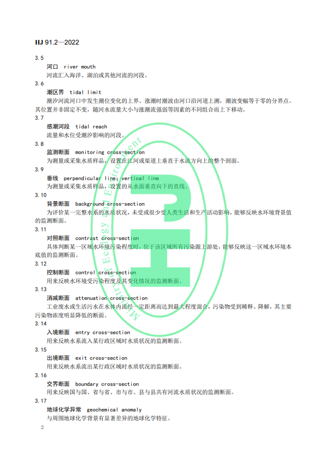 標(biāo)準(zhǔn)號(hào):HJ 91.2—2022部分代替 HJ/T 91—2002