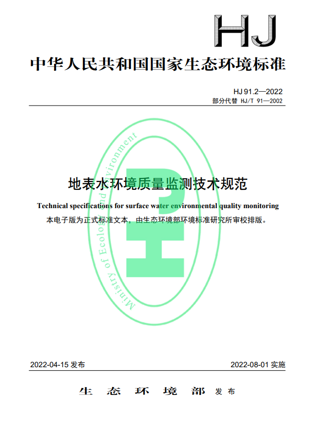 近日,生態(tài)環(huán)境部發(fā)布了《地表水環(huán)境質(zhì)量監(jiān)測(cè)技術(shù)規(guī)范(HJ 91.2—2022部分代替 HJ/T 91—2002)》,此標(biāo)準(zhǔn)將于2022年8月1日起實(shí)施。全文如下:
