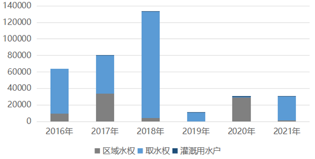 注:由于2016、2017年交易數(shù)據(jù)無法獲得,僅包含2018年-2021年,2019年無區(qū)域水權(quán)交易