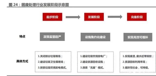 我們將固廢處理行業(yè)分為起步階段、發(fā)展階段、完備階段三個歷程?!笆濉?期間,隨著項目加快推進,固廢處理能力得到迅速提升,在固廢處理的“量”上, 現(xiàn)有項目已滿足基本處理需求;“十四五”期間,結合減污降碳的目標,在固廢處 理上,將更注重固廢處理“質(zhì)”的提升。目前,我國固廢行業(yè)正處于由發(fā)展階段向 完備階段升級的過程,對于資源回收和近零排放提出更高的需求。2021 年 12 月國家發(fā)改委等 18 部委聯(lián)合發(fā)布《“十四五”時期“無廢城市”建設工作方案》,提出推動 100 個左右地級及以上城市開展“無廢城市”建設;到 2025 年,“無廢城市”固體廢物產(chǎn)生強度較快下降,綜合利用水平顯著提升,無害 化處置能力有效保障,減污降碳協(xié)同增效作用充分發(fā)揮,基本實現(xiàn)固體廢物管理信 息“一張網(wǎng)”。
