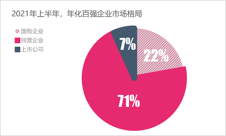2022年1-5月份,年化額百強企業(yè)中(5個月度的年化百強企業(yè),總數(shù)為500家),國有企業(yè)134家,占比27%;民營企業(yè)311家,占比62%;上市公司55家,占比11%。