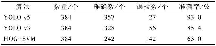 將基于YOLO v5算法的垃圾分類識別結(jié)果與YOLO v3深度學(xué)習(xí)算法以及傳統(tǒng)的機器學(xué)習(xí)算法HOG+SVM對比,結(jié)果如表1所示。本研究使用了384種垃圾進行算法的檢測。從表1中可知:YOLO v3深度學(xué)習(xí)精度低于YOLO v5算法,傳統(tǒng)機器學(xué)習(xí)的方法HOG+SVM 準(zhǔn)確率更低,只有63%。YOLO v5算法檢測結(jié)果準(zhǔn)確,在數(shù)據(jù)集豐富的情況下準(zhǔn)確率高。本研究對垃圾圖像進行了訓(xùn)練,準(zhǔn)確率可達到93.0% ,因此可用于實際應(yīng)用。