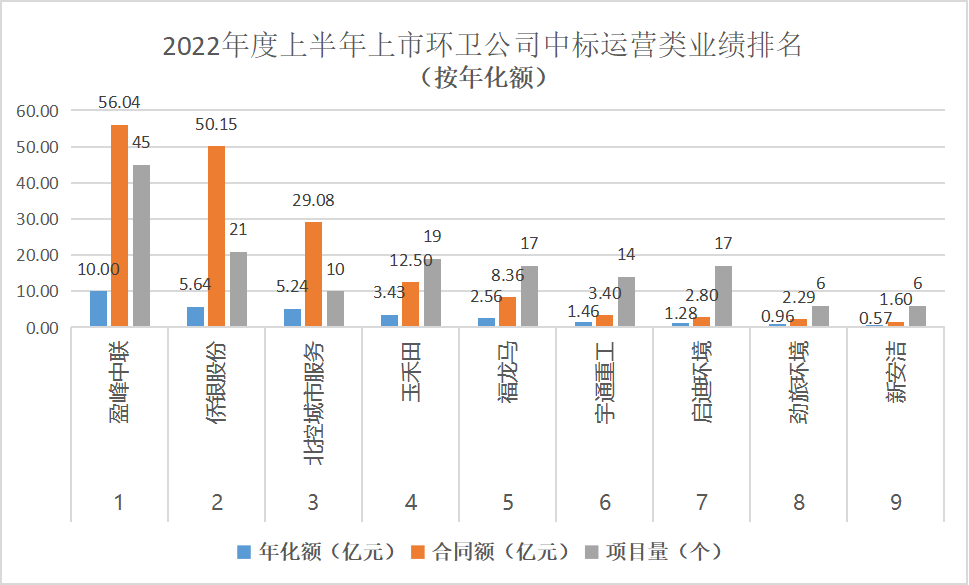 附1:2022年度上半年環(huán)衛(wèi)項目中標(biāo)業(yè)績TOP10排名(按年化額)